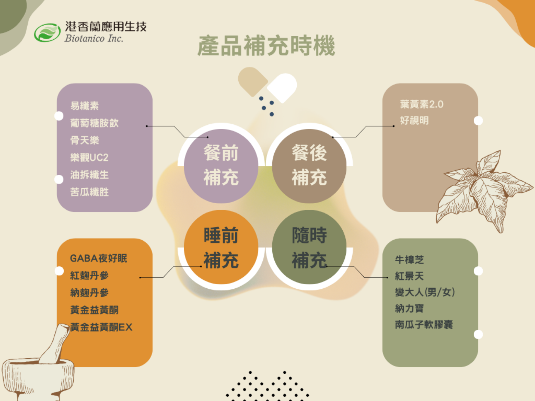Established in 2008, Biotanico Inc. inherits the pharmaceutical expertise of its parent company, Kaiser Pharmaceutical Co. Ltd.. With decades of experience in herbal health science and a strong foundation in scientific Chinese medicine, the company has expanded into the development of herbal supplements, functional foods, topical patches, and decoction products, offering safe and reliable comprehensive health supplements for busy modern individuals.