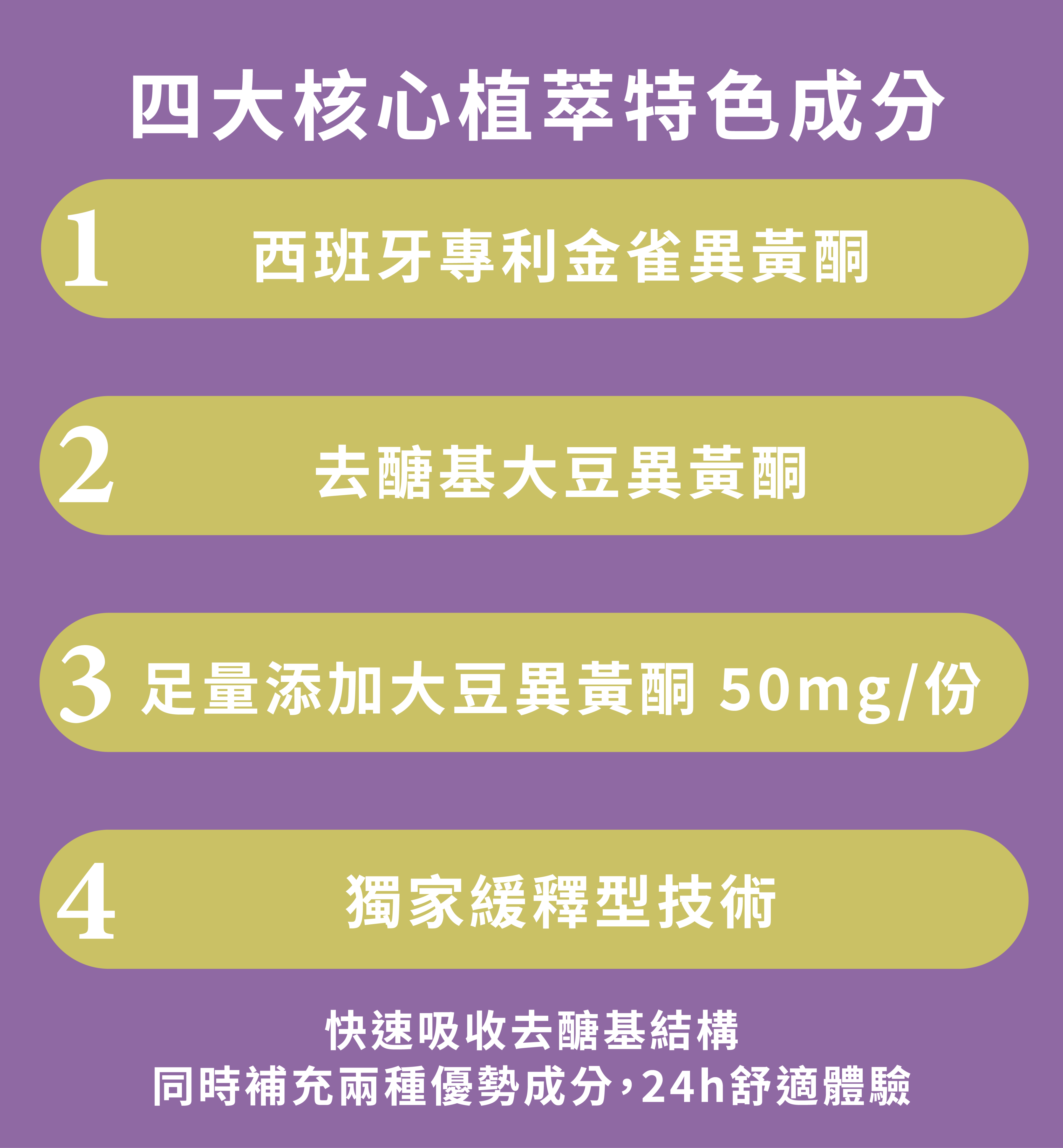 ✦ Sustain-Release Isoflavones → Continuous care for 24 hours.
